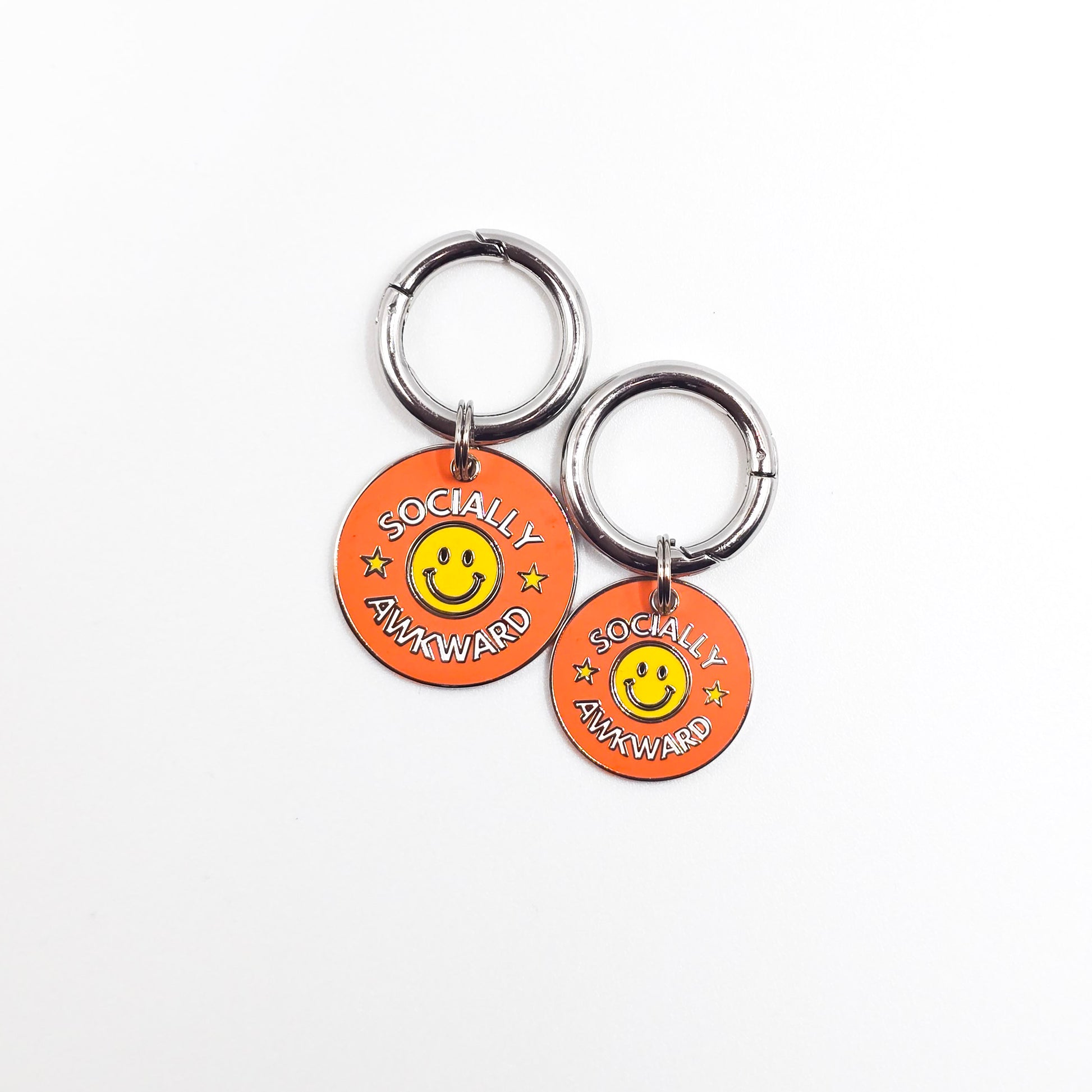 - Tag Sizes: 25mm (small) and 30mm (large), with an overall size of 55mm and 60mm—big enough to keep strangers at bay.